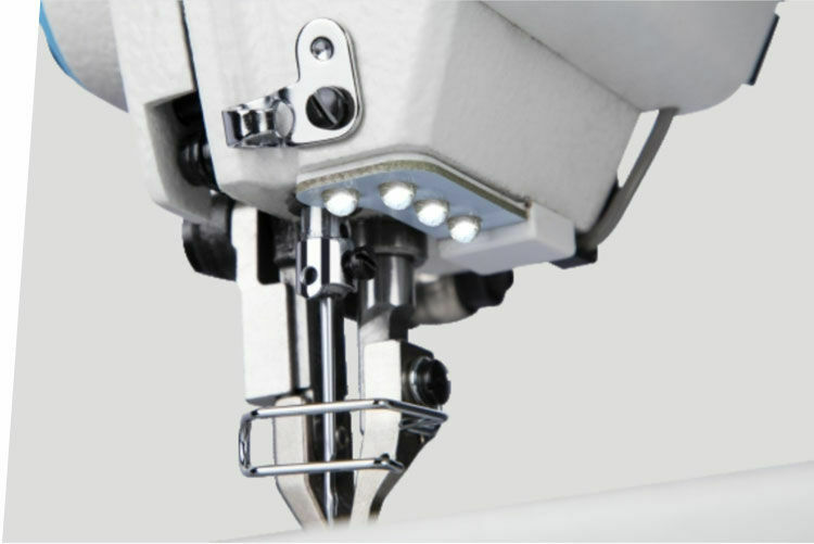 Stebnówka jednoigłowa, do szycia materiałów ciężkich, podwójny transport (dolny ząbkowy + krocząca stopka), prędkość szycia 2000 ściegów/min, długość ściegu do 8 mm, wysokość podnoszenia stopki 5,5 mm ręcznie lub 13mm za pomocą kolanówki, poziomy chwytacz o podwójnej pojemności.